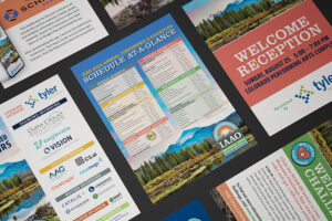 Conference design requires both a broad design approach and a close eye on the minutia of event needs. Visuals need to have variation to keep them interesting, but all design decisions need to be made with the end user and client needs in mind. With the right visual language, attendees will know where to go, who to see, and will remember the value that your event created for them professionally.